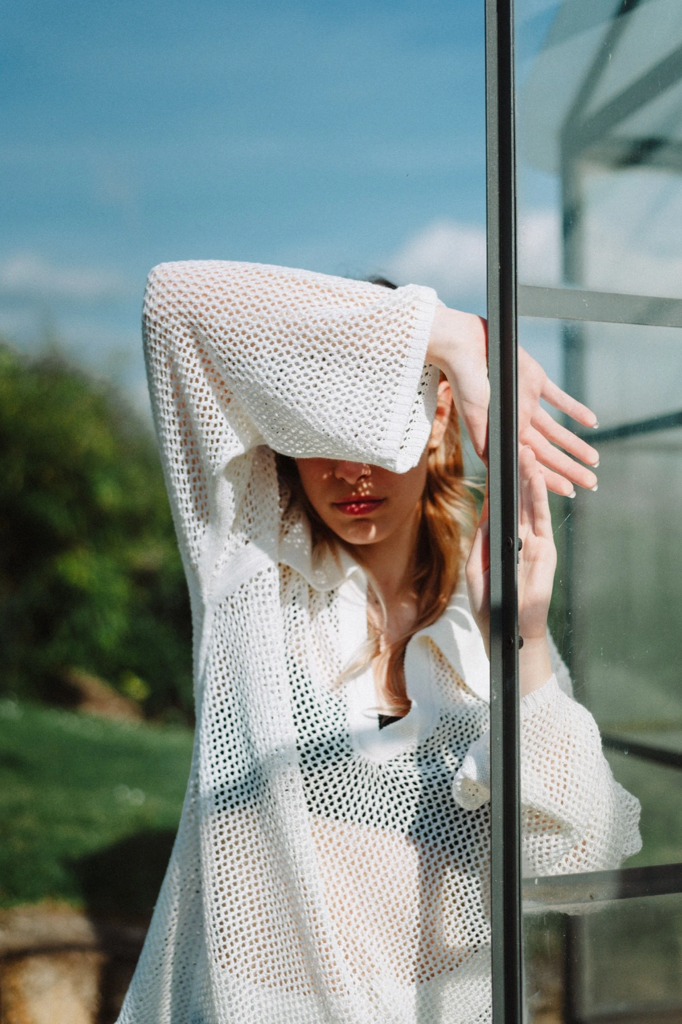 Our model, captured in moments of quiet introspection and serene beauty, perfectly conveys the journey from vulnerability to strength. The soft, diffused light highlights the delicacy of fabrics, while underscoring the inner power and resilience that allows us to blossom, even after adversity. It’s a visual poem celebrating authenticity and the poetic beauty of evolution.