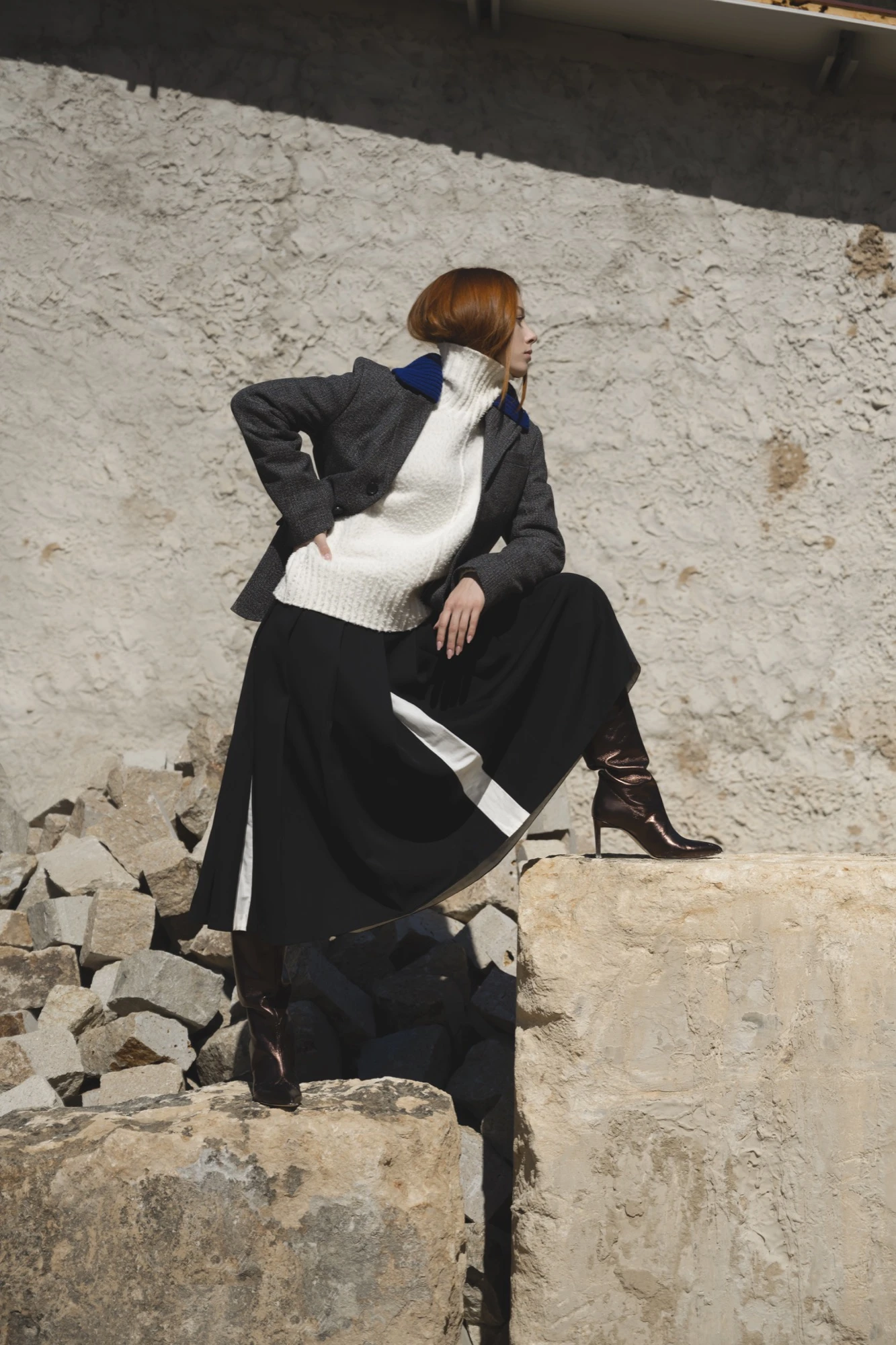 Photographer Camilla Vazzoler captured six iconic looks inside a hidden quarry in the heart of the Euganean Hills. Our model Alessia embodies the spirit of Kimono, showcasing a selection of pieces that blend emerging design with timeless appeal, set against a backdrop of raw, natural beauty.