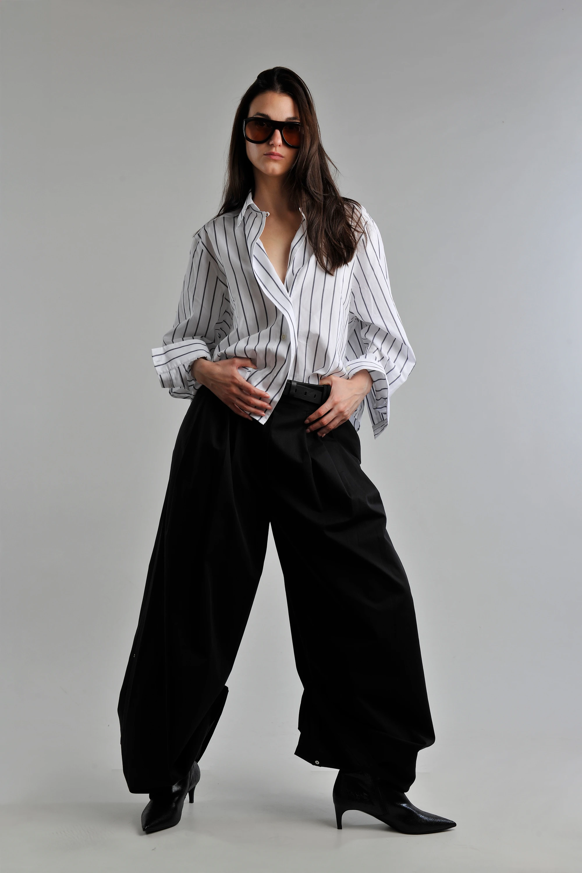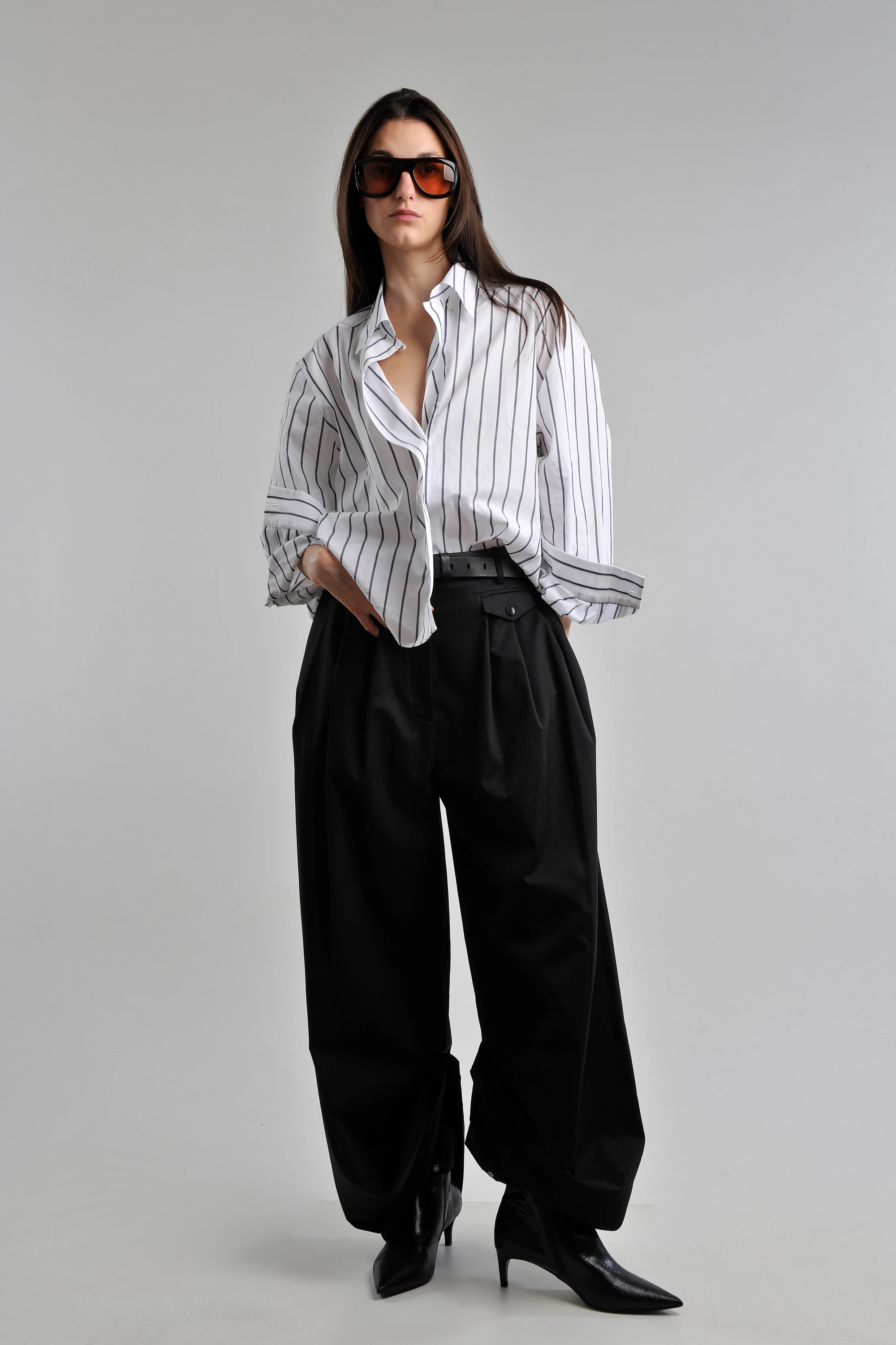 The TIBI trousers are the foundation - engineered to work for you not the other way round - offering versatile styling options. Paired with a sharp REMAIN jacket and a classic HOUSE OF DAGMAR shirt, the silhouette remains polished and strong.