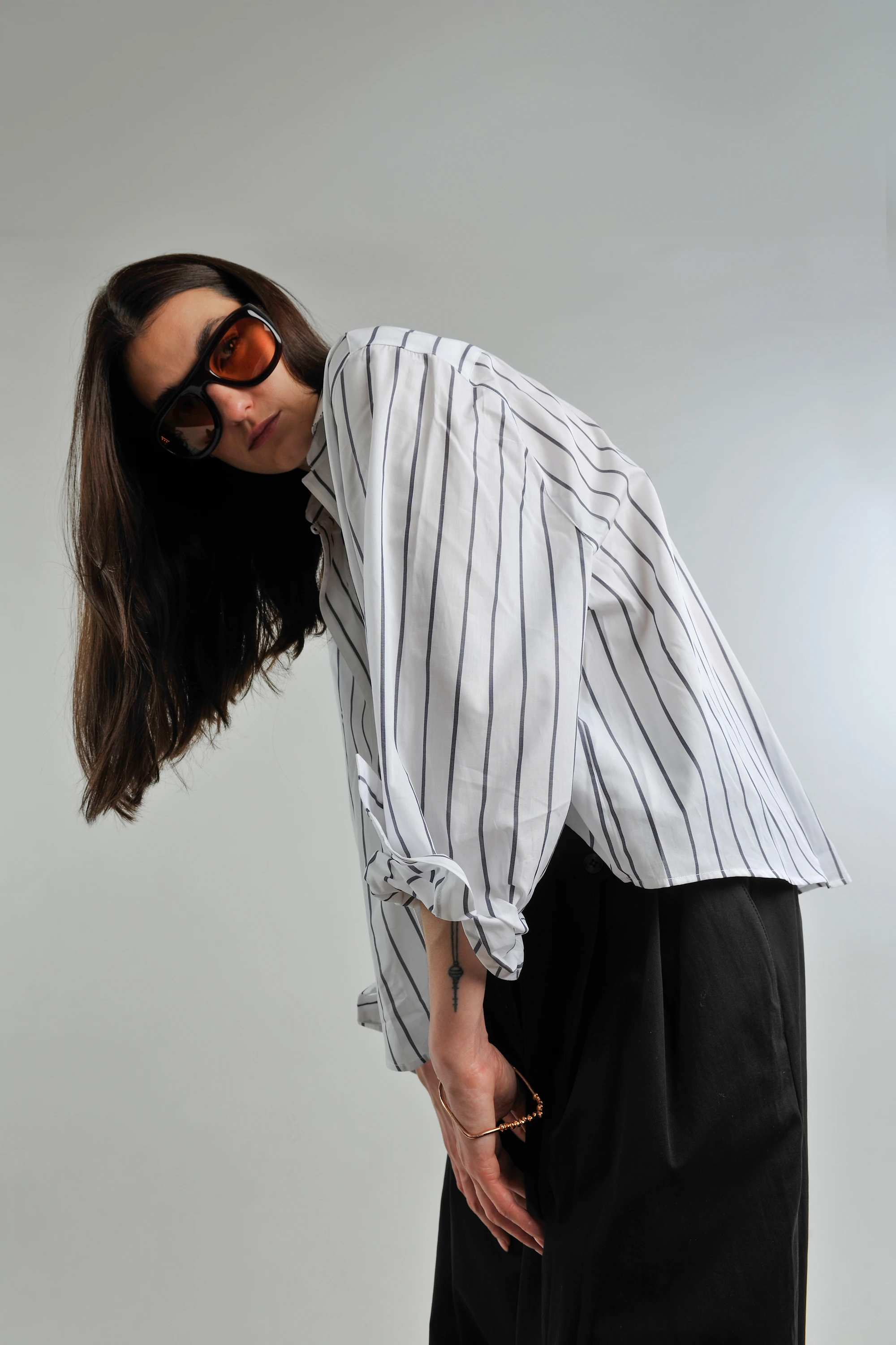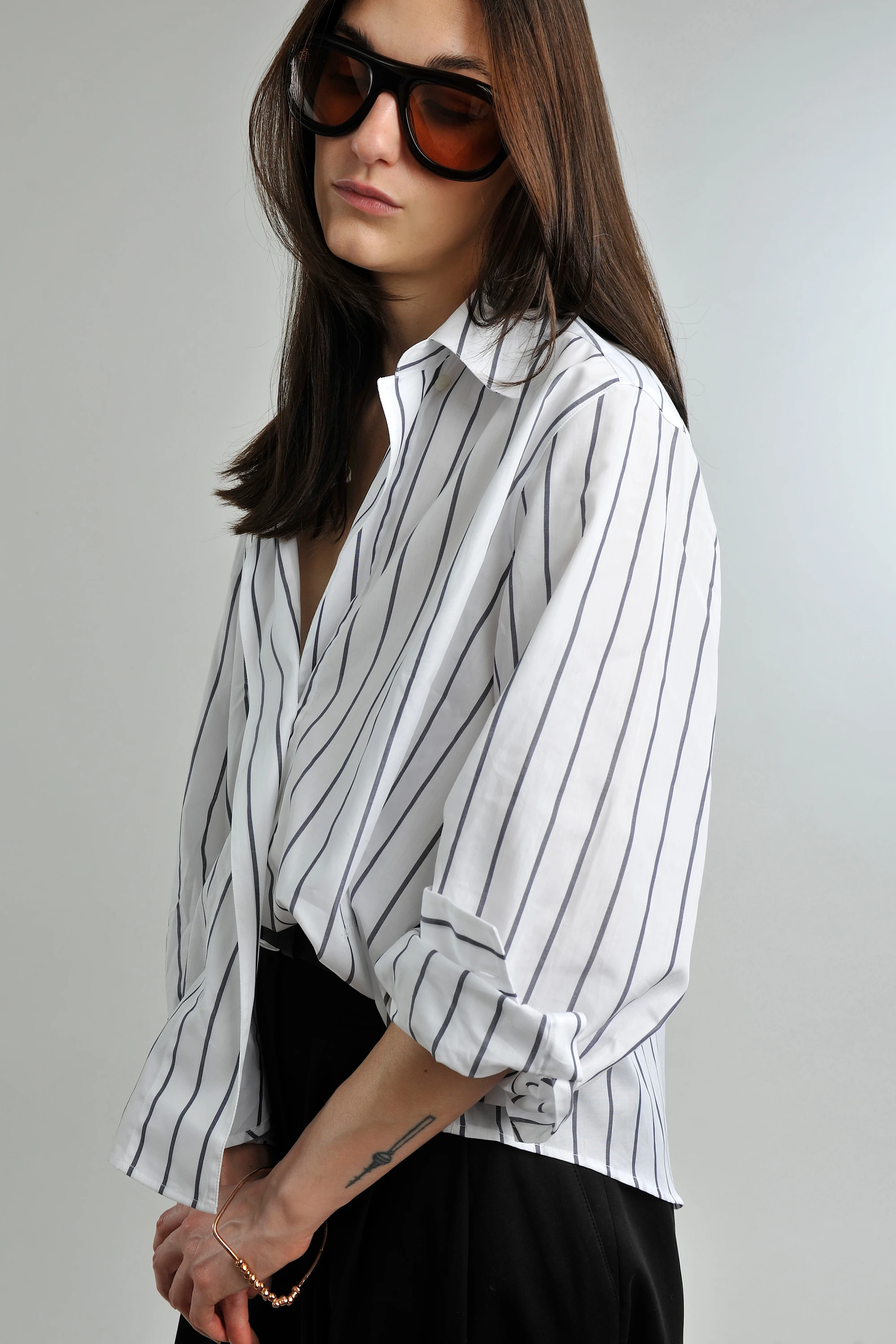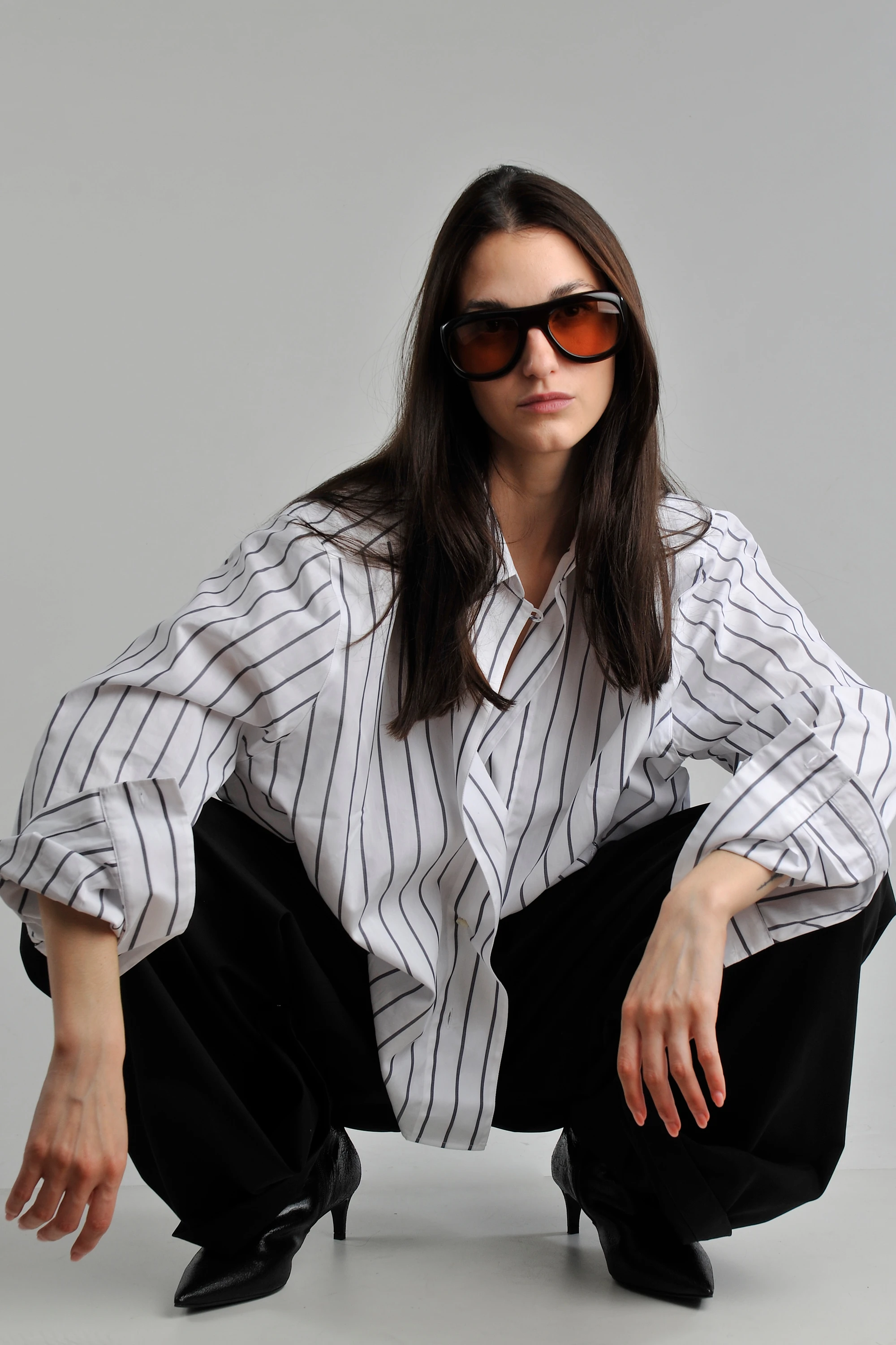 The accessories introduce quiet luxury: the textural suede of the AESTHER EKME bag and DEL CARLO shoes, held together by the definitive line of a TELA belt. A final touch of distinction comes from PORT TANGER glasses, completing this essential, refined uniform.