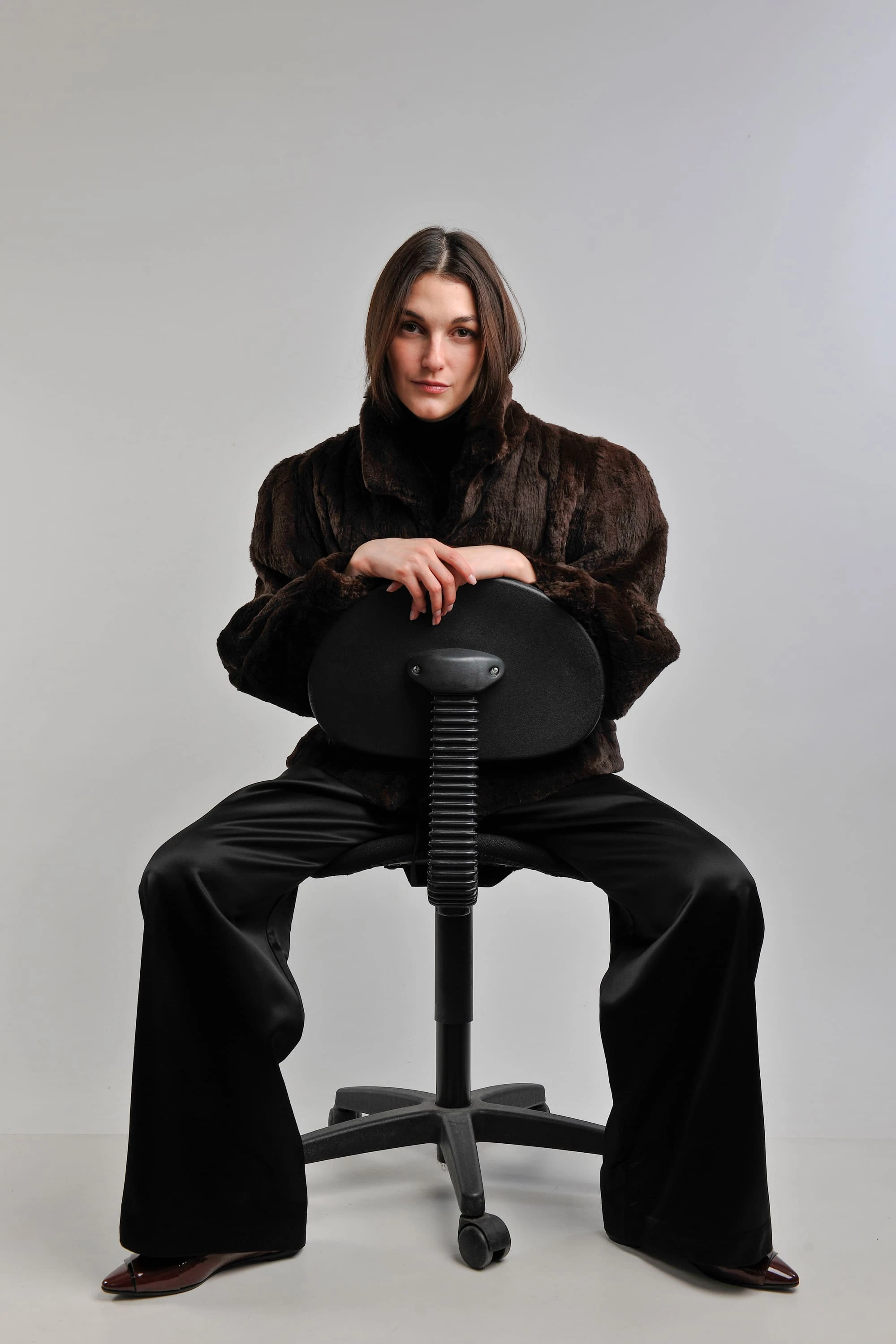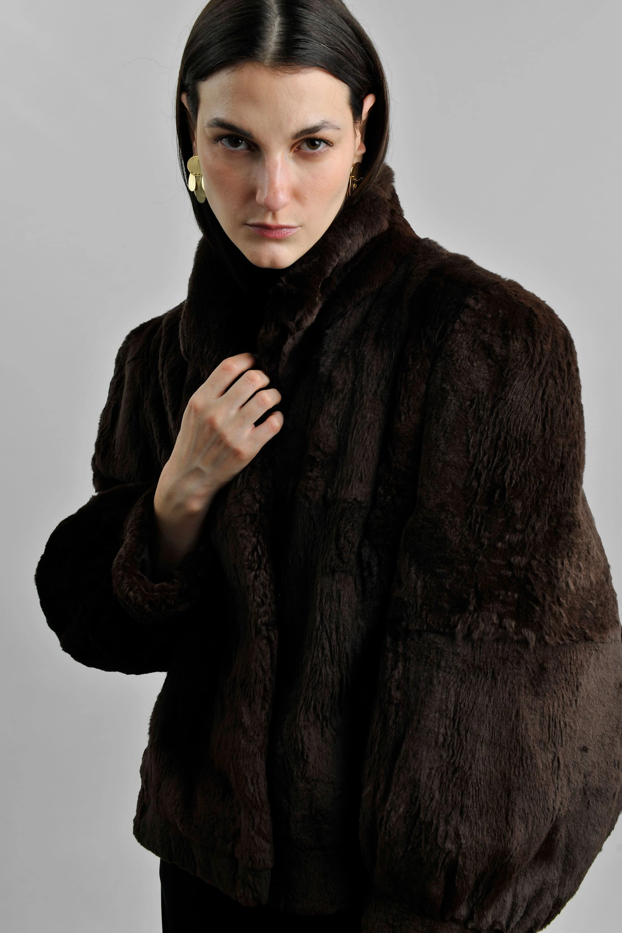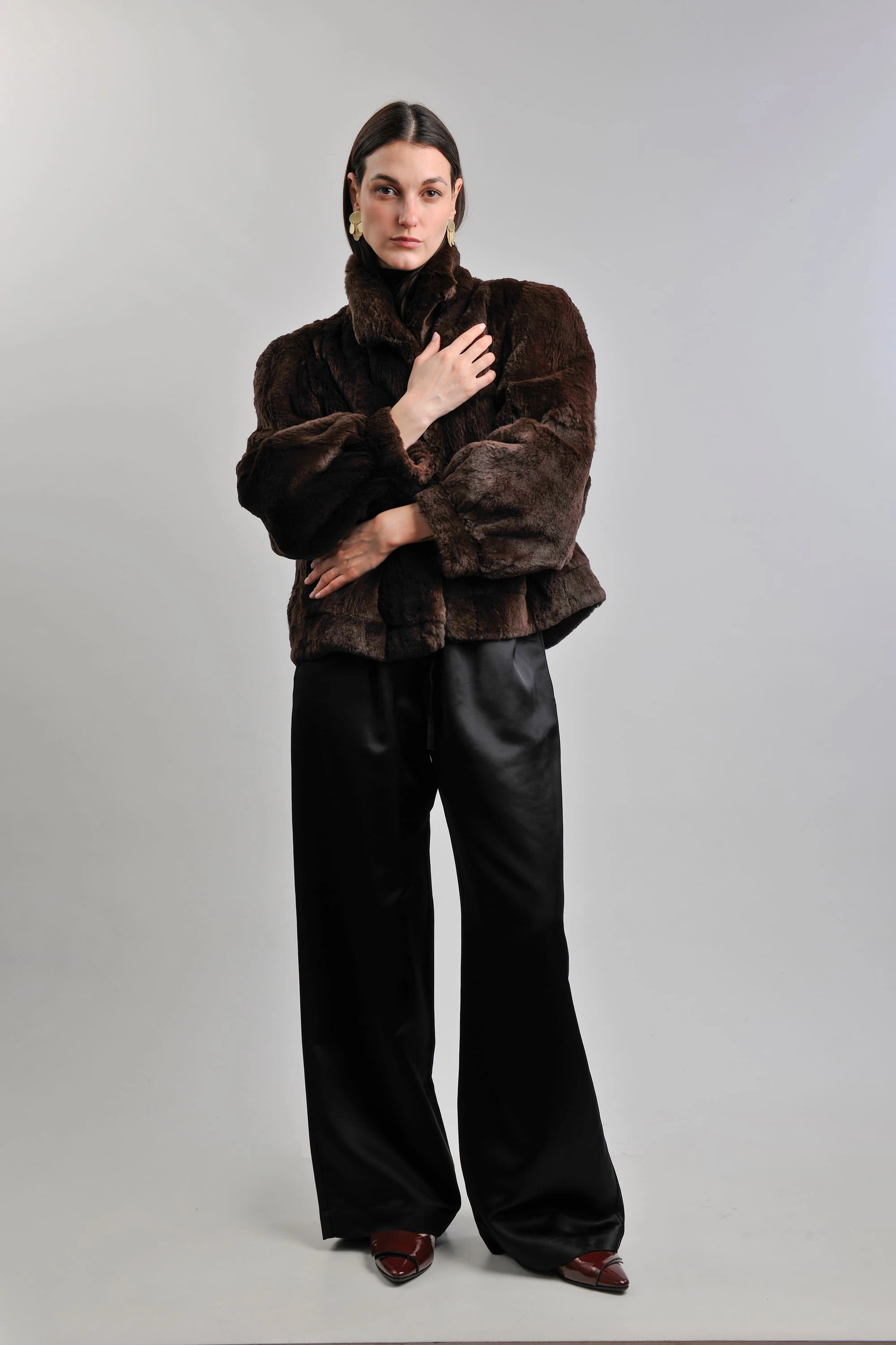 For ultimate texture and warmth, the ensemble is completed by a rich VINTAGE regenerated fur coat.
