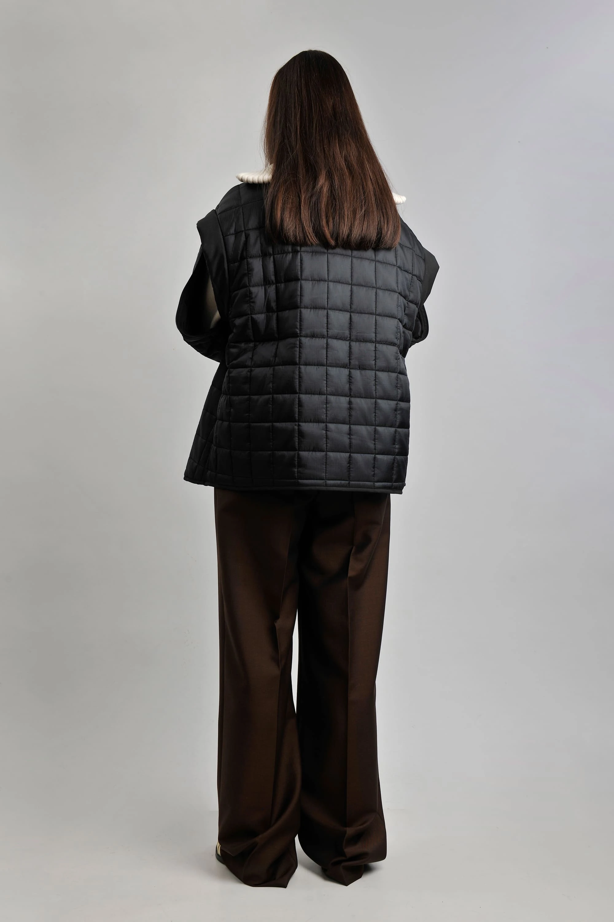 BY MALENE BIRGER hooded jacket creates a strong, structured shell, layered over a vibrant PLAN C sweater, which introduces a thoughtful color pop.
