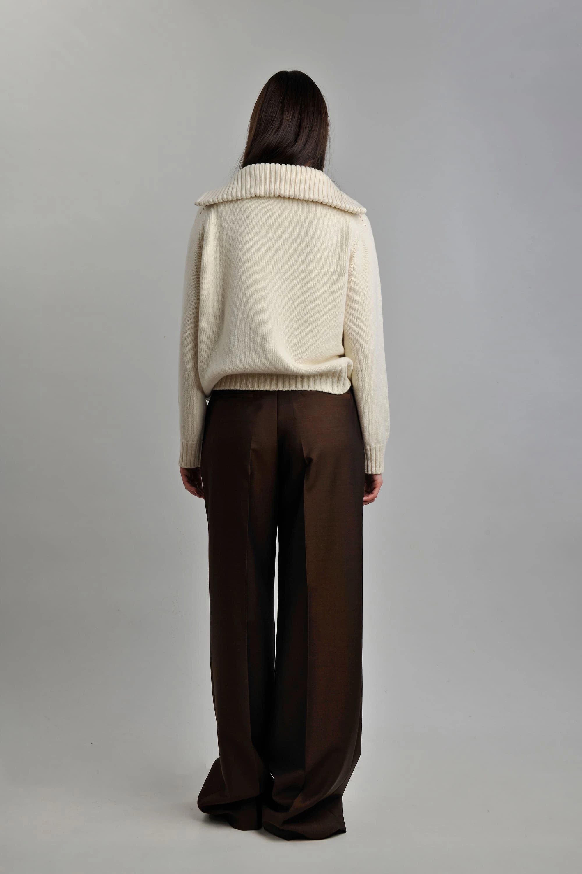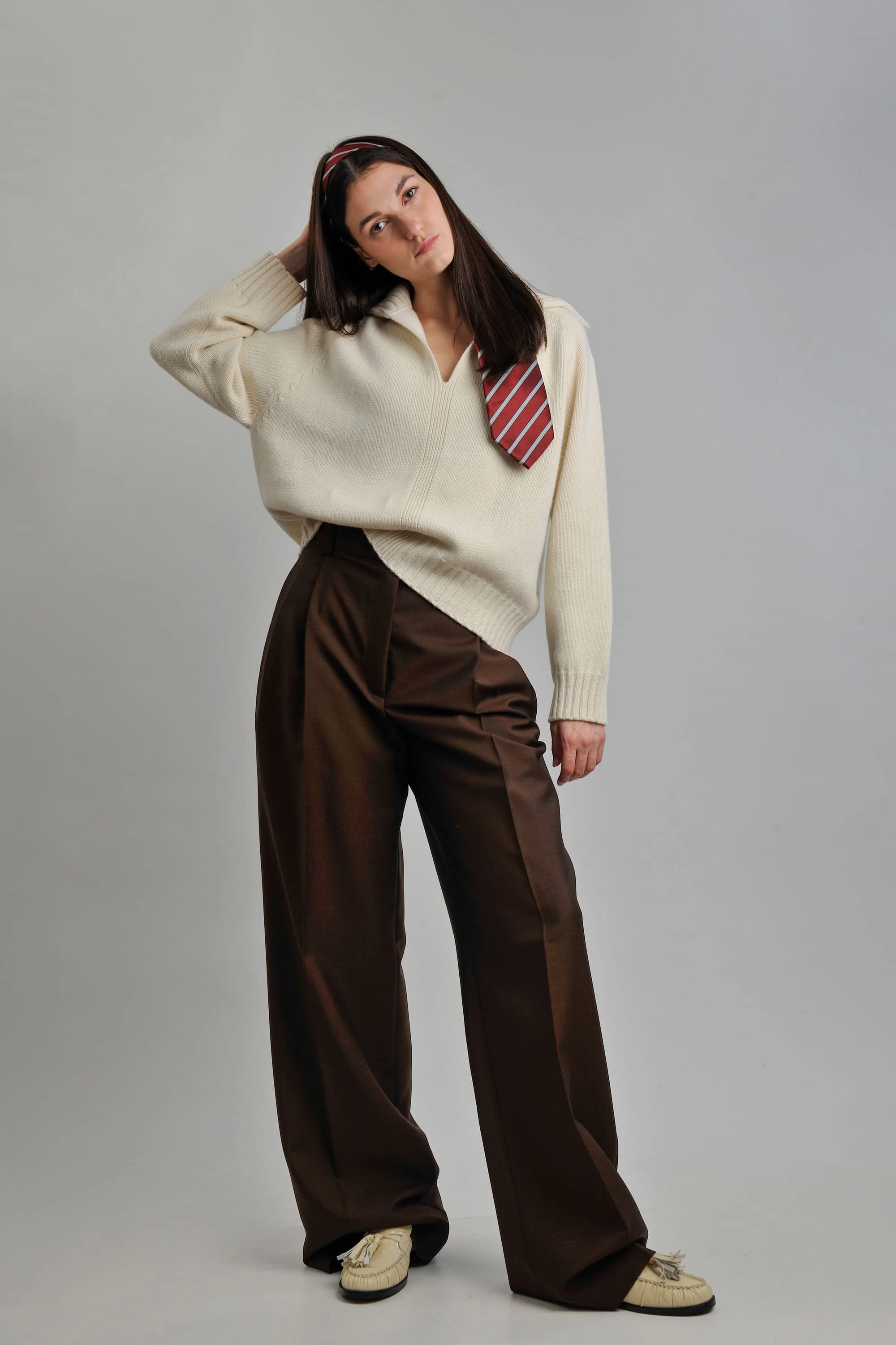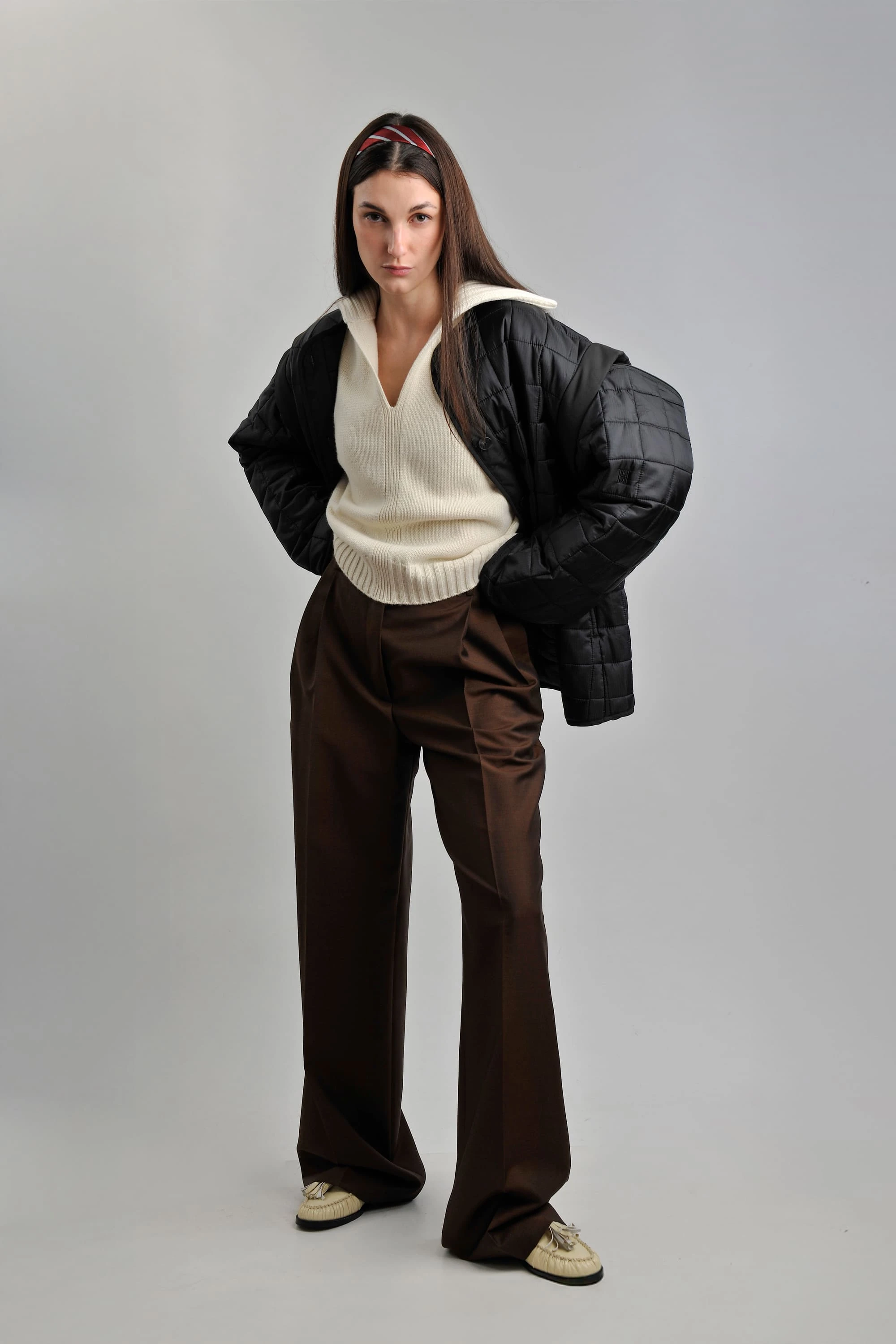The silhouette is anchored by the impeccable structure and fluid lines of the ROHE trousers.